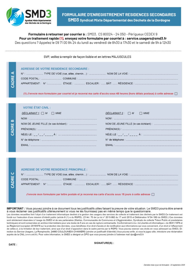 Formulaire d’enregistrement compte usager (résidence secondaire)