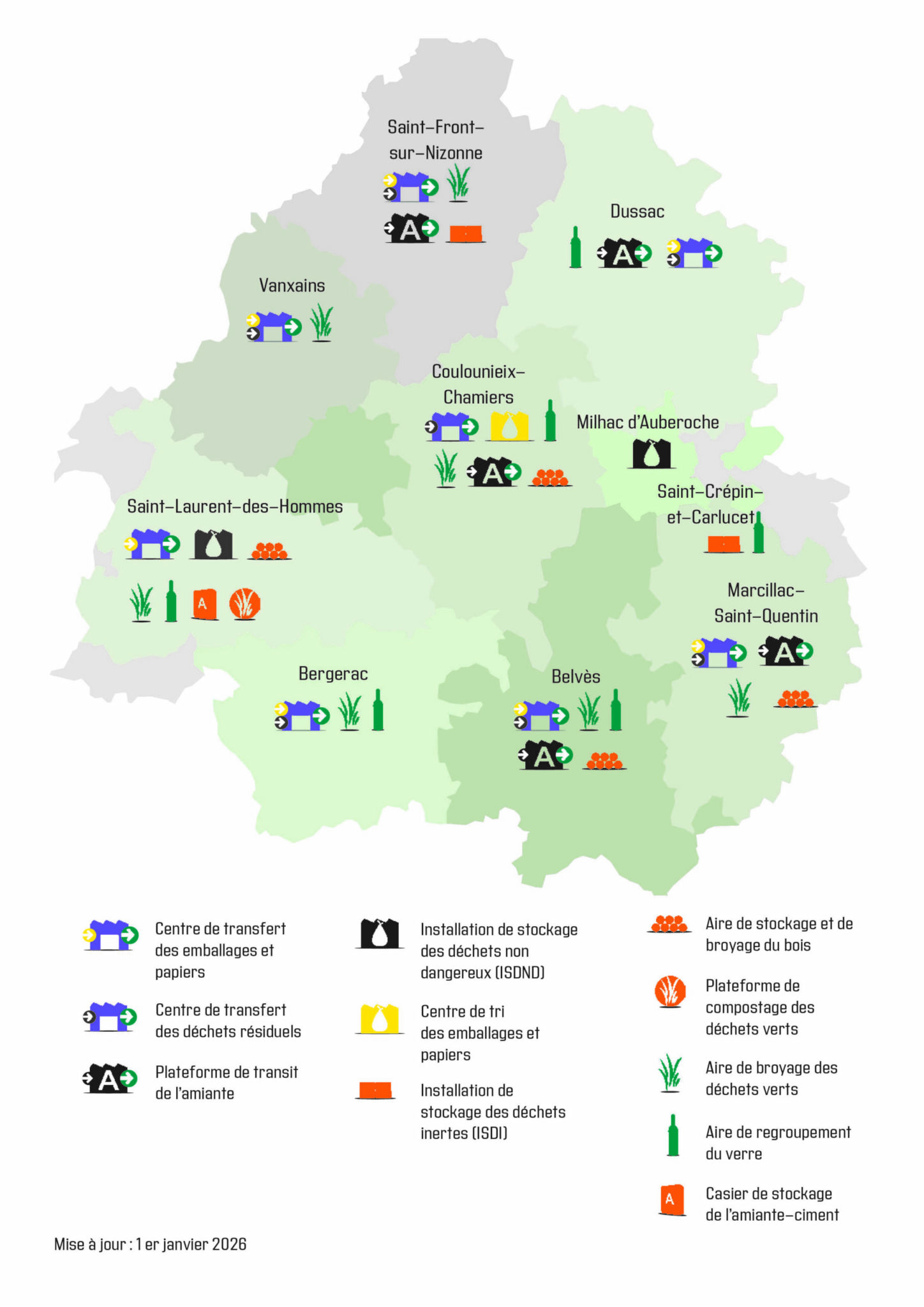 21 installations de transport-traitement sont en service sur le département de la Dordogne :
